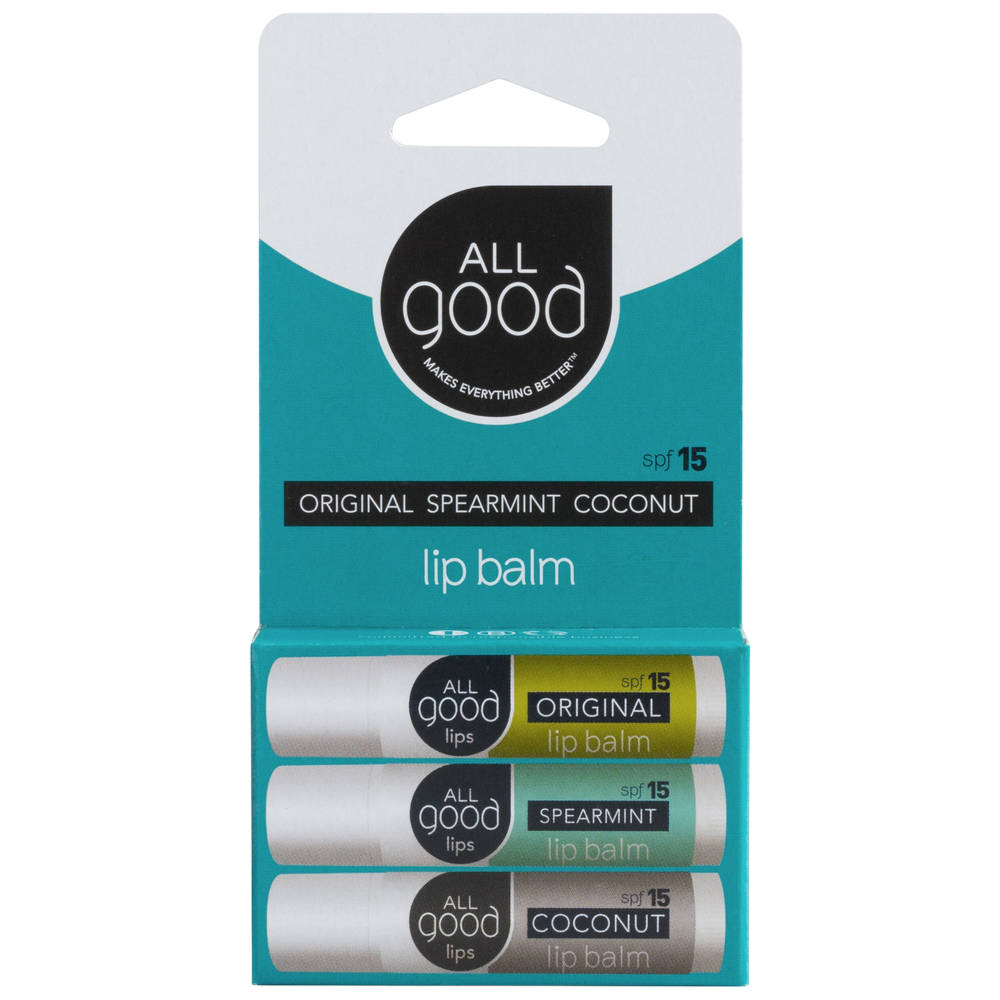 3 Pack Lip Balm, SPF 15, Original, Spearmint, Coconut Flavors