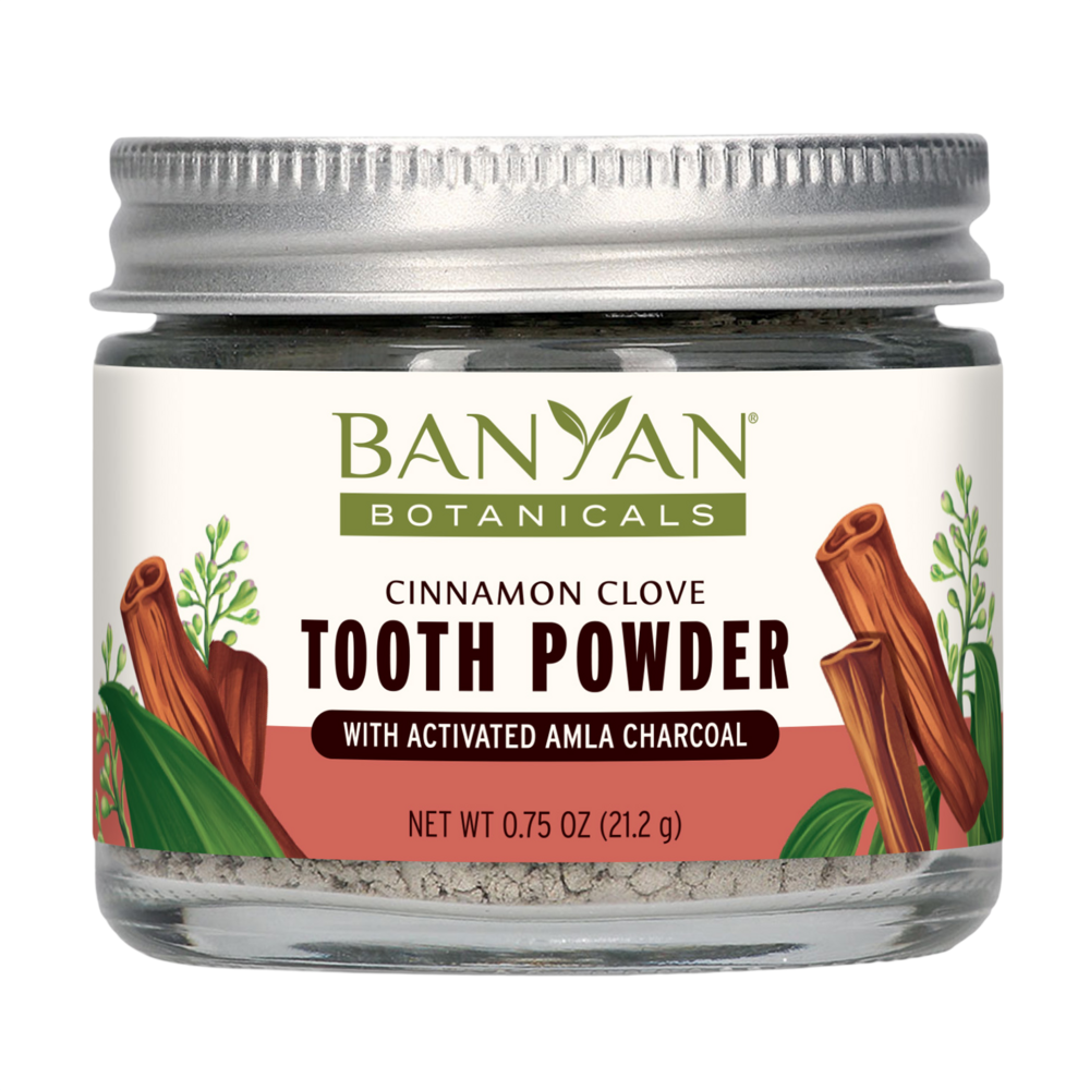 With powerful herbs and minerals, including miswak, neem, and a unique activated charcoal made from dried, deseeded amalaki, our Cinnamon Clove Tooth Powder brings together the best ingredients that leave your teeth and mouth feeling clean, polished, and refreshed.
