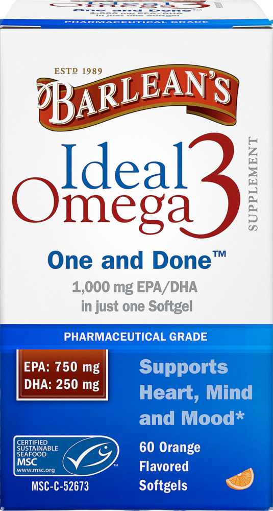 One and Done. With a whopping 1,060mg Omega-3 in a single softgel, take one and you're done for the day. We went the extra mile for these Omega-3s with a coveted 5-star rating from IFOS, an accredited third-party certification program, and certified sustainability from Marine Stewardship Council's rigorous standards. At Barlean's, quality matters