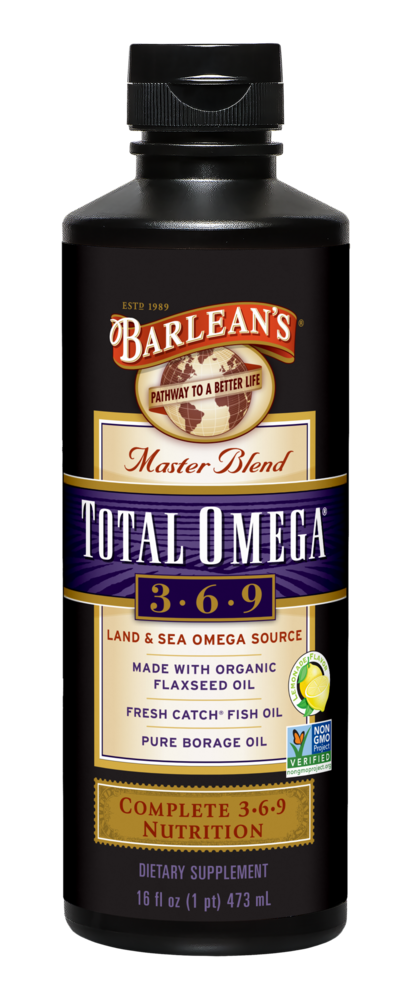 Ingredients: Total Omega Oil Blend (organic flaxseed oil, fish oil (anchovy, sardine, and/or mackerel), and borage oil), natural flavors, and antioxidant (sunflower lecithin, sunflower oil, natural mixed tocopherols, rosemary extract, ascorbic acid, and citric acid.