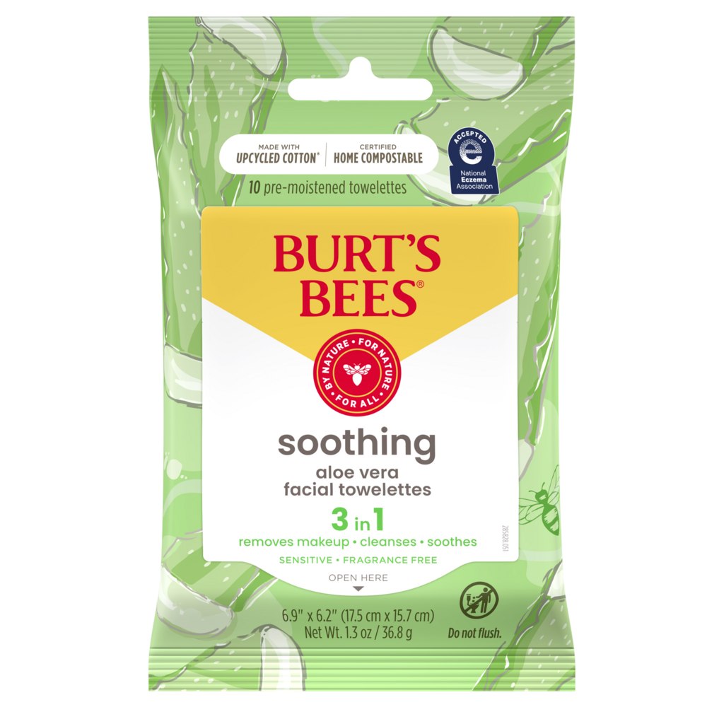 Conveniently tuck a pack of these aloe infused towelettes into your purse, travel bag or gym bag. Face wipes are easy to use as a face cleanser on the go – no water or rinsing required. Formulated without parabens, phthalates, SLS, or petrolatum, Burt’s Bees® Sensitive Facial Towelettes with Aloe leave your skin soft and clean. They’re gentle on your skin so you can feel good about using Burt’s Bees® towelettes to clean your face.