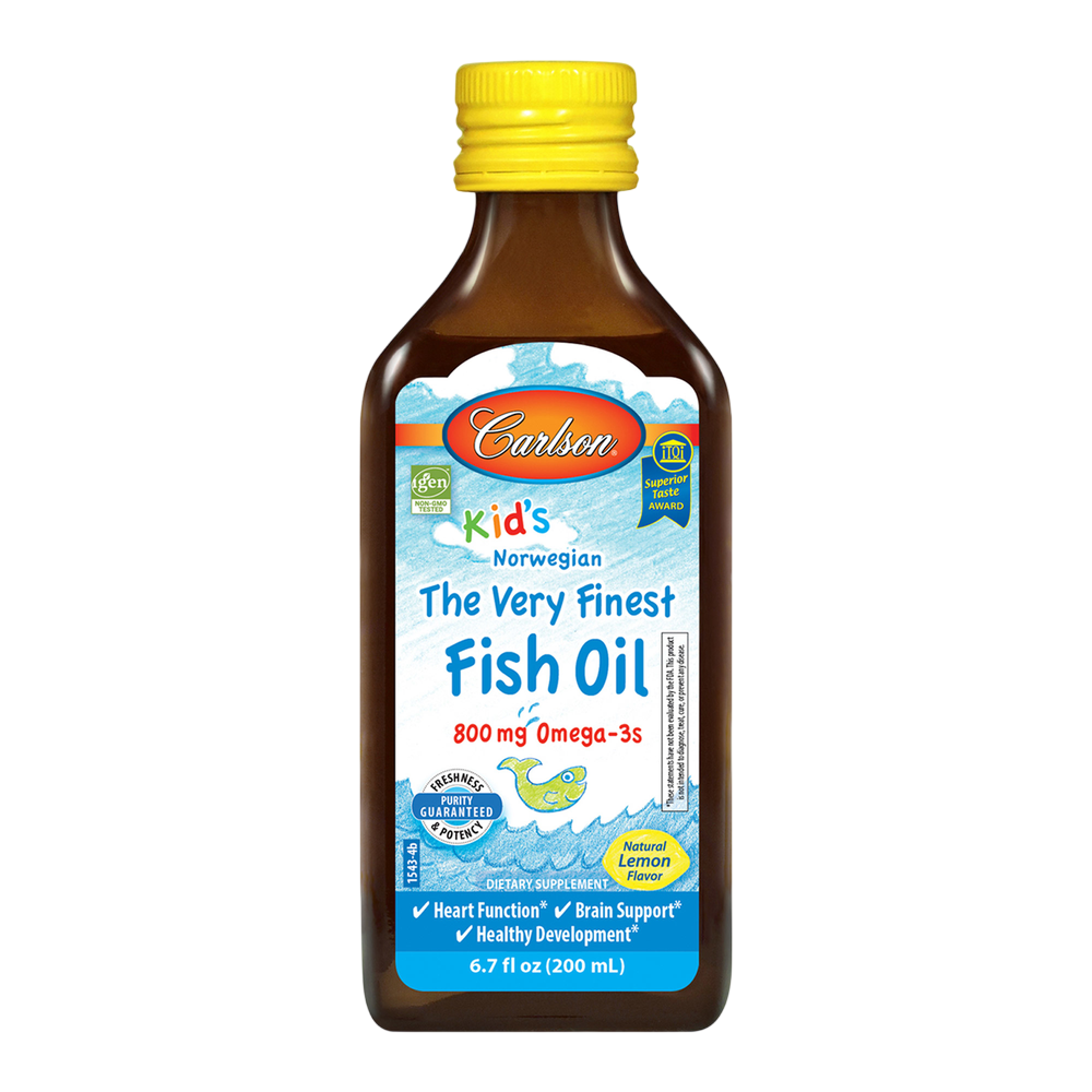 Kid's Norwegian The Very Finest Fish Oil™ in lemon flavor has received numerous awards for its taste and quality. To ensure maximum freshness, Kid's The Very Finest Fish Oil™ is closely managed from sea to store. Carlson Labs sources the highest quality, deep, cold-water fish using traditional, sustainable methods. Kid's The Very Finest Fish Oil™ is then bottled with a touch of antioxidants and is given a nitrogen flush to remove oxygen and help prevent oxidation. Each 1/2 teaspoon of Kid's The Very Finest Fish Oil™ provides 800 mg of omega-3s, including EPA and DHA, which support heart, brain, vision, and joint health.* Like all Carlson omega-3s freshness, potency, and purity are guaranteed.
