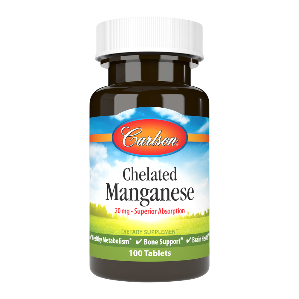 Manganese is an essential trace mineral involved in many key body functions, including supporting a healthy metabolism, and bone and brain health. While most manganese supplements aren't easily absorbed and can cause an upset stomach, Carlson Chelated Manganese is blended with the important amino acid glycine, allowing it to pass through the digestive tract gently and to be highly absorbable.