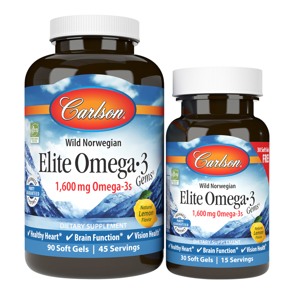 Carlson Elite Omega-3 Gems® is a professional-strength fish oil concentrate. A single serving provides 1,600 mg of omega-3s, including the important omega-3s EPA and DHA, which promote heart, brain, vision, and joint health.* To ensure maximum freshness, Elite Omega-3 Gems® is closely managed from sea to store. Carlson Labs sources the highest quality, deep, cold-water fish using traditional, sustainable methods. And like all Carlson omega-3s, freshness, potency, and purity are guaranteed.