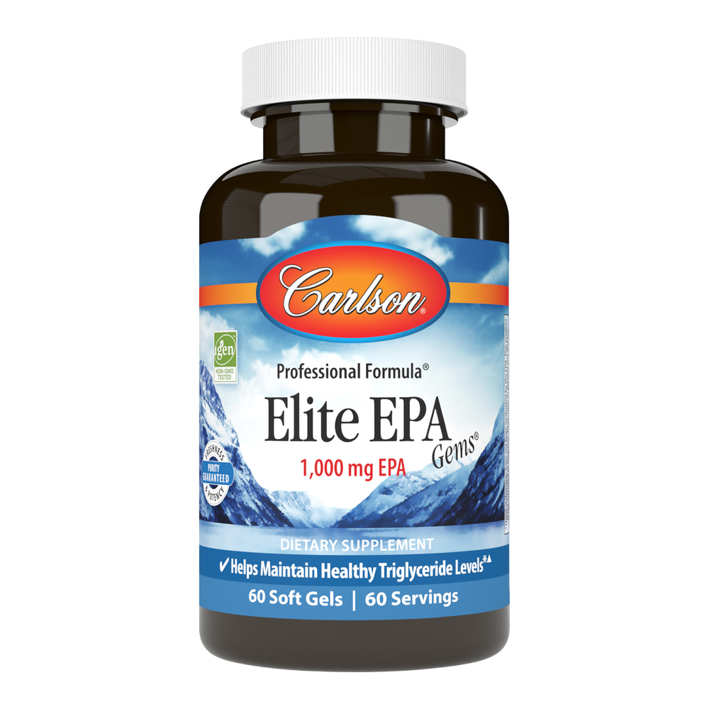 The beneficial omega-3 EPA plays an important role in cardiovascular health and helps maintain healthy triglyceride levels already within normal range. Elite EPA Gems® is highly concentrated to provide 1,000 mg of EPA in a single soft gel. To ensure maximum freshness, Elite EPA Gems is closely managed from sea to store. Carlson Labs sources the highest quality, deep, cold-water fish using traditional, sustainable methods. And like all Carlson omega-3s, freshness, potency, and purity are guaranteed.