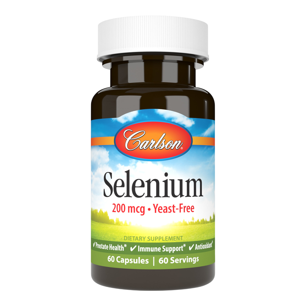 Selenium is a major component of a group of antioxidant enzymes, called selenoproteins. These enzymes help protect our body from free radical damage. It also plays an important role in promoting prostate health. Selenium is an essential trace mineral, meaning our body doesn't produce it, so we must get selenium from the foods we eat. If our diet falls short, a selenium supplement may be a great option. Each Carlson Selenium capsule contains 200 mcg of organically-bound selenium from l-selenomethionine. • Promotes prostate health* • Supports a healthy immune system* • Helps maintain normal muscle mass and tone* • An essential component of glutathione peroxidase, an antioxidant that helps fight free radicals* • Potency and quality guaranteed