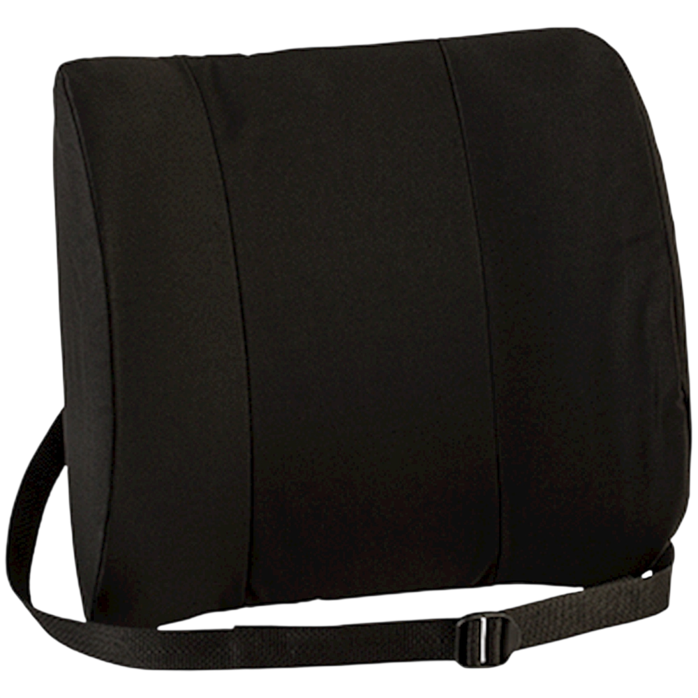 Sitback Rest Lumbar Support Cushion promotes proper posture in any chair.Staying seated for extended periods of time at the office or at home can lead to serious back pain. Healthcare professionals know that sitting too long creates pressure on the spine, distorting spinal curves and compressing discs. All of this can cause pinching of the nerves in the spinal cord, leading to numbness, tingling and back pain. Help protect and maintain proper spinal curve with Core Products International, Inc's lumbar support cushion.This popular cushion made from contoured foam with side support wings provides medium to firm support and helps keep you sitting properly. Use at home, office or in your car. Attached positioning belt keeps cushion in place. Standard covered in a durable cotton blend. 13 x 14 (33cm x 35.5cm)