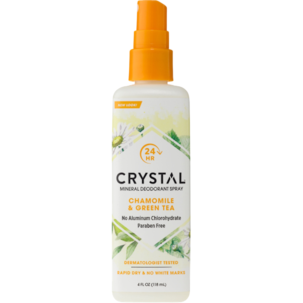 Crystal deodorant™ spray, infused with the replenishing aromas of chamomile and green tea, rapidly dries to provide an invisible, protective barrier that blocks odor before it starts. Ideal for both men and women, this highly effective spray prevents odor without harsh chemicals. Crystal touch-free spray allows for easy application-without touching or rubbing. Prevents body odor for up to 24 hours. Dermatologist tested.