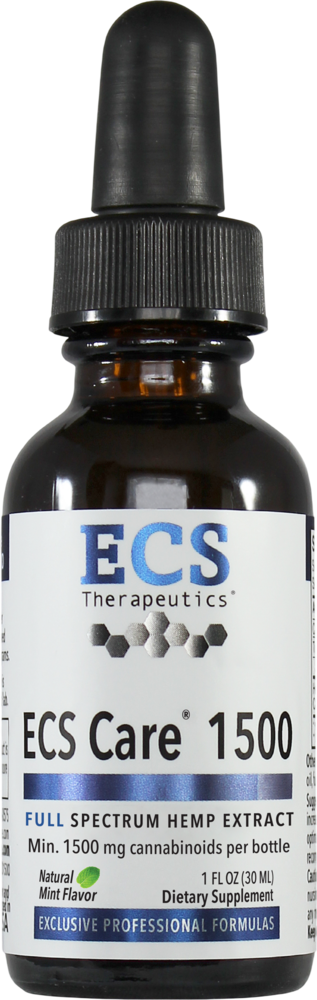 ECS Care® 1500 provides full spectrum hemp extract blended in organic, cold-pressed hemp seed oil, with a 100% natural, refreshing mint flavor. ECS Care 1500 supplies a minimum of 1500 mg of naturally occurring hemp-derived cannabinoids per bottle. In addition to dozens of cannabinoids and terpenes found in hemp, scientists have identified hundreds of other beneficial phytochemicals in hemp that together contribute to a more comprehensive nutritional effect.