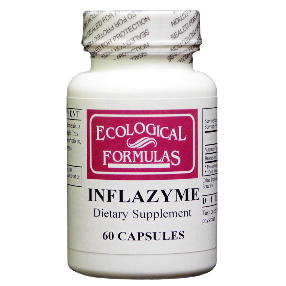 Inflazyme by Ecological Formulas is a dietary supplement designed to help the digestive system more fully and completely digest protein.* The key ingredient in Inflazyme by Ecological Formulas is bromelain, a combination of essential enzymes sourced from the steam and juice of the pineapple fruit. The bromelain in this supplement is combined with vitamin C to provide a very powerful blend of ingredients..