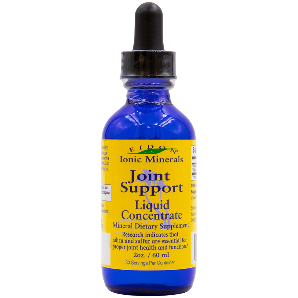 Eidon Joint Support is a combination of Silica and Sulfur, both essential for supporting joint health. They are the active mineral ingredients in glucosamine sulfate and chondroitin sulfate. Silica and Sulfur are the two most important minerals required by the body to produce glycosaminoglycans, the main building blocks of collagen and connective tissue.*Silica is the necessary component for strong and resilient bones.*