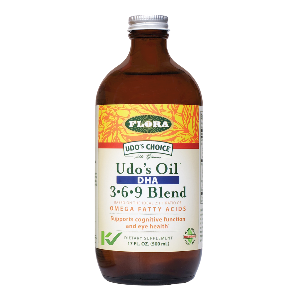 Soak up the benefits of DHA, sustainably, with Udo’s Oil® DHA 3 • 6 • 9 Blend. It combines DHA from unrefined, uncontaminated, sustainably-sourced DHA-rich algae, rather than fish, with Udo’s unique oil blend of omega-3 and omega-6 essential fatty acids in a balanced 2 to 1 ratio with omega-9 fatty acids too. DHA supports the proper functioning of our brains as adults, and supports the development of the nervous system in children.*