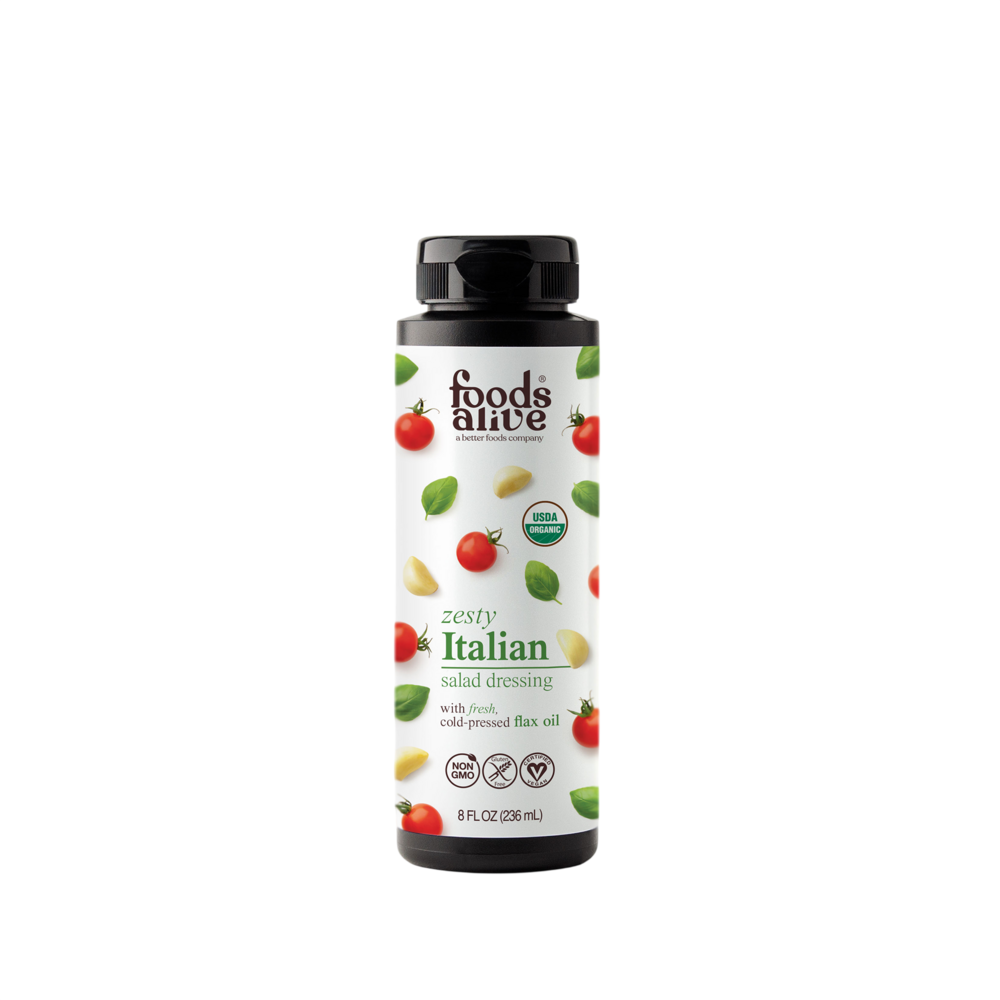 Other Ingredients: Unrefined gold flax oil*, filtered water, rice vinegar*, unrefined chia oil*, garlic granules*, Himalayan pink salt, onion powder*, Italian herb blend* (parsley*, basil*, marjoram*, oregano*, rosemary*, thyme*, sage*), coconut sugar*, tomato powder*.