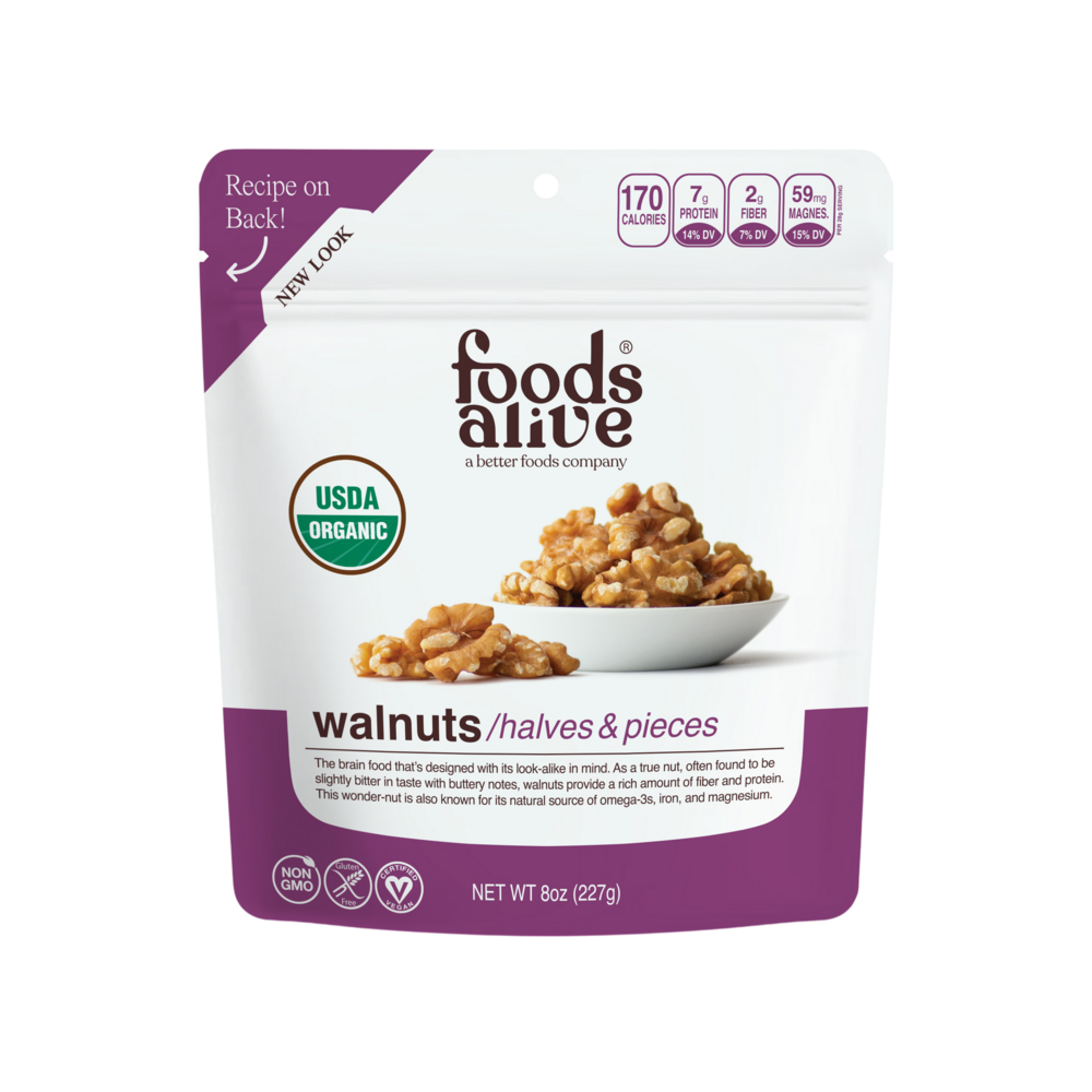 Ingredients: Organic raw walnuts (1/2’s and pieces)