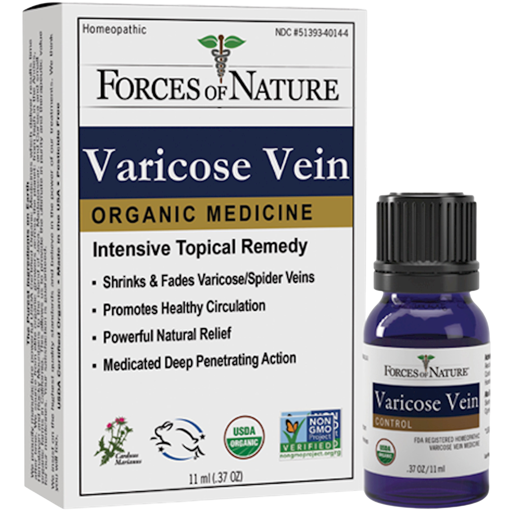 Drug Facts: Active Ingredients: Aesculus hippocastanum* 30C - Remedy for varicose veins Carduus arianus* 12C - Treats varicose veins/vascular deficiency Hamamelis virginiana* 30C - Treats varicose veins/venous congestion Inactive Ingredients: Sesame Seed Oil*, Rose Geranium Oil*, Cypress Oil*, Niaouli Oil* *USDA Certified Organic