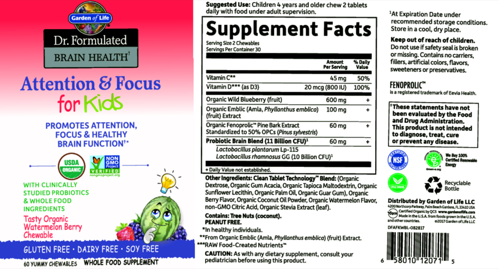 Dr. Formulated Brain Health Organic Attention/Focus Kids