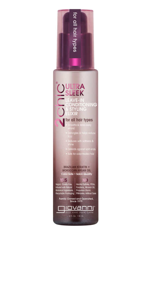 Revel in Giovanni's exclusive Dual Smoothing Complex of Brazilian Keratin and Moroccan Argan Oil with plant-sourced protein. Release the potion and transport your senses. This penetrating 2-in-1 treatment and styling serum shields hair from the elements (even styling heat), then locks in sleek texture, unbelievable softness and shine. Color — protected. Vital elasticity – reborn.