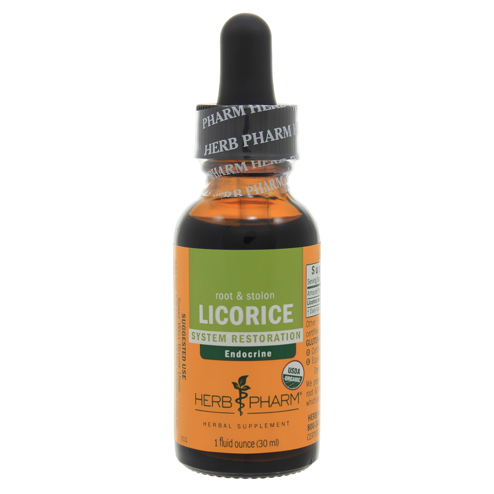 Herb Pharm prepares Licorice extract from the root and stolon of Certified Organic Glycyrrhiza glabra plants. Licorice is cold extracted in small batches.