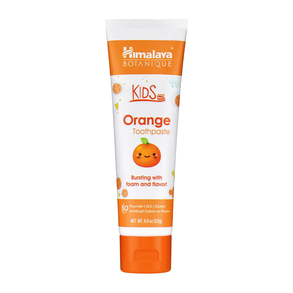 Himalaya Orange Toothpaste for Kids is full of sweet orange flavor and plentiful foam that keeps kids full of smiles!