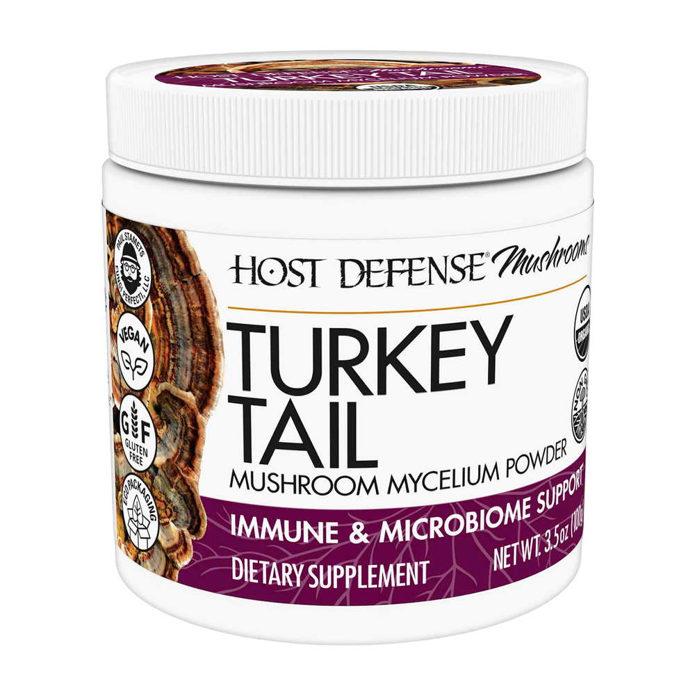 Host Defense® Turkey Tail Powder is activated, freeze-dried, Certified Organic mushroom mycelium, with a full spectrum of constituents: polysaccharides (beta glucans, arabinoxylane, fucose, glucose, xylose, galactose and mannose), glycoproteins, ergosterols, triterpenoids and other myco-nutrients, which are essential for Supporting Natural Immunity and the natural microbiome.*