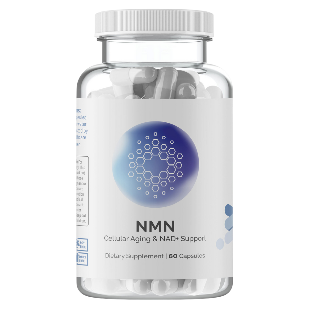 NMN- Healthy Aging Support NMN, or nicotinamide mononucleotide, plays a vital role in cellular energy production by supporting NAD levels. By enhancing NAD, NMN aids in various cellular processes, including DNA repair and efficient energy metabolism. Trans-resveratrol, a potent antioxidant found in red grapes, supports healthy aging by promoting cellular health and combating oxidative stress. Pterostilbene, a compound naturally found in blueberries, works synergistically with resveratrol to further enhance the body's defense against the aging process. Together, these scientifically researched ingredients provide comprehensive support for healthy aging and increased energy production. BENEFITS OF NMN: Supports healthy energy levels, stamina and endurance Reinforces mitochondrial function Promotes DNA repair and cellular renewal Maintains healthy insulin levels and overall metabolism