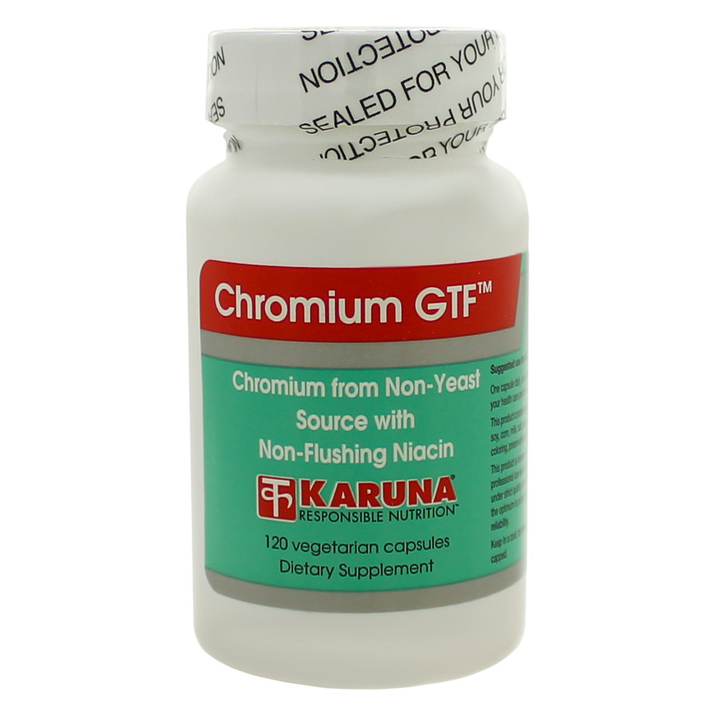 Chromium GTF has repeatedly shown its ability to support insulin function and blood glucose levels already in the normal range. In addition to a highly bioavailable chromium complex not associated with yeast sources, Karuna's Chromium GTF contains 100 mg of inositol hexaniacinate (non-flushing niacin) in a synergistic combination that has been shown effective for maintaining healthy blood levels of both glucose and lipids.*
