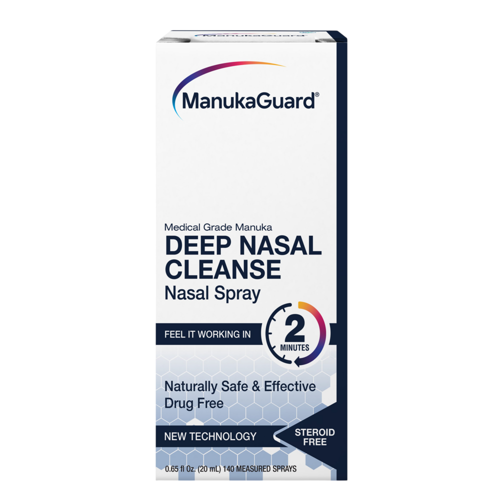 Fast-acting and easy to use, Deep Nasal Cleanse Nasal Spray effectively cleanses the nasal passages of airborne irritants such as dust, pet dander, bed mites, and other environmental contaminants encountered in our daily lives. This formula harnesses the cleansing and hydrating properties of Medical Grade Mānuka Honey. Once you try it, you'll never want to go back to saline sprays!