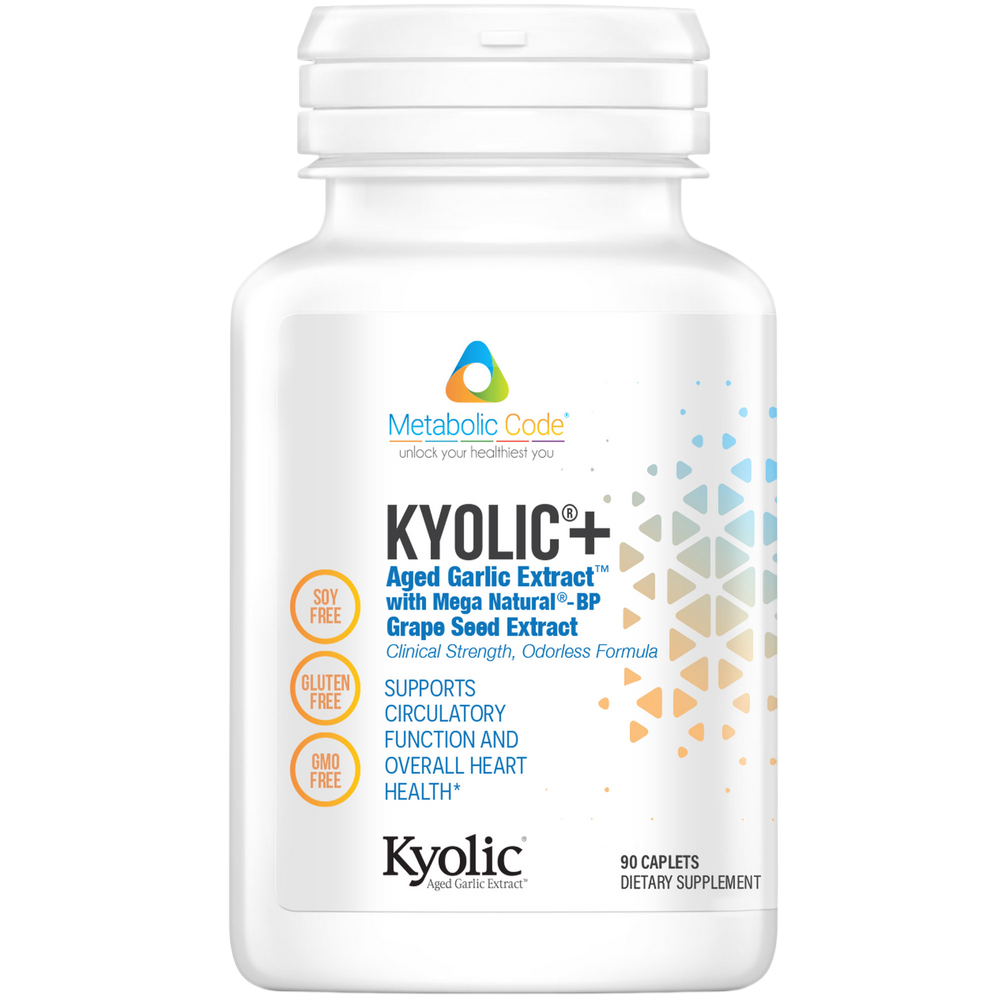 Kyolic+ formula blends clinically proven Kyolic® Aged Garlic and MegaNatural®-BP proprietary Grape Seed Extract to create a superior antioxidant supplement to optimize heart and vascular health.* Kyolic+ is odorless, GI friendly and meets nutrient standards for purity and potency, as well as overall product quality.
