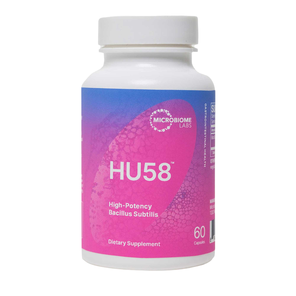 Bacillus Subtilis HU58 is a friendly bacterial spore that was discovered in a healthy human gut at the University of London. HU58 is an incredibly rugged spore that can withstand extreme pH levels, high temperatures, dehydration, antibiotics, pressure, radiation, and even the harsh environment of the digestive tract. It can also produce over 12 targeted antibiotics of its own, which