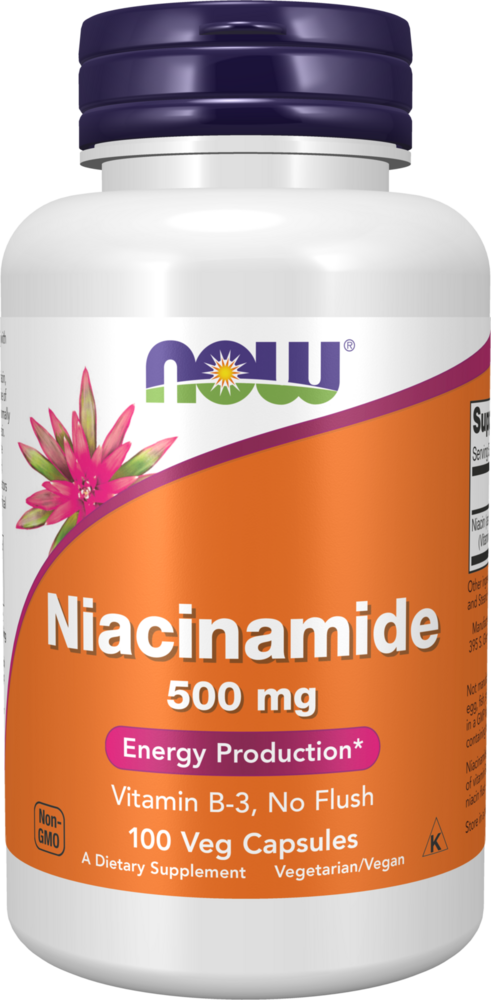 Niacinamide (Vitamin B-3) is a form of Niacin, a water soluble B-Vitamin. It is a derivative of Niacin that does not cause the "flush" normally associated with taking high doses of Niacin. Niacinamide is readily converted into the bioactive forms of Niacin, NAD+, NADH, NADP, and NADPH, which are vital cofactors in cellular energy production and are critical for the maintenance of DNA stability.*