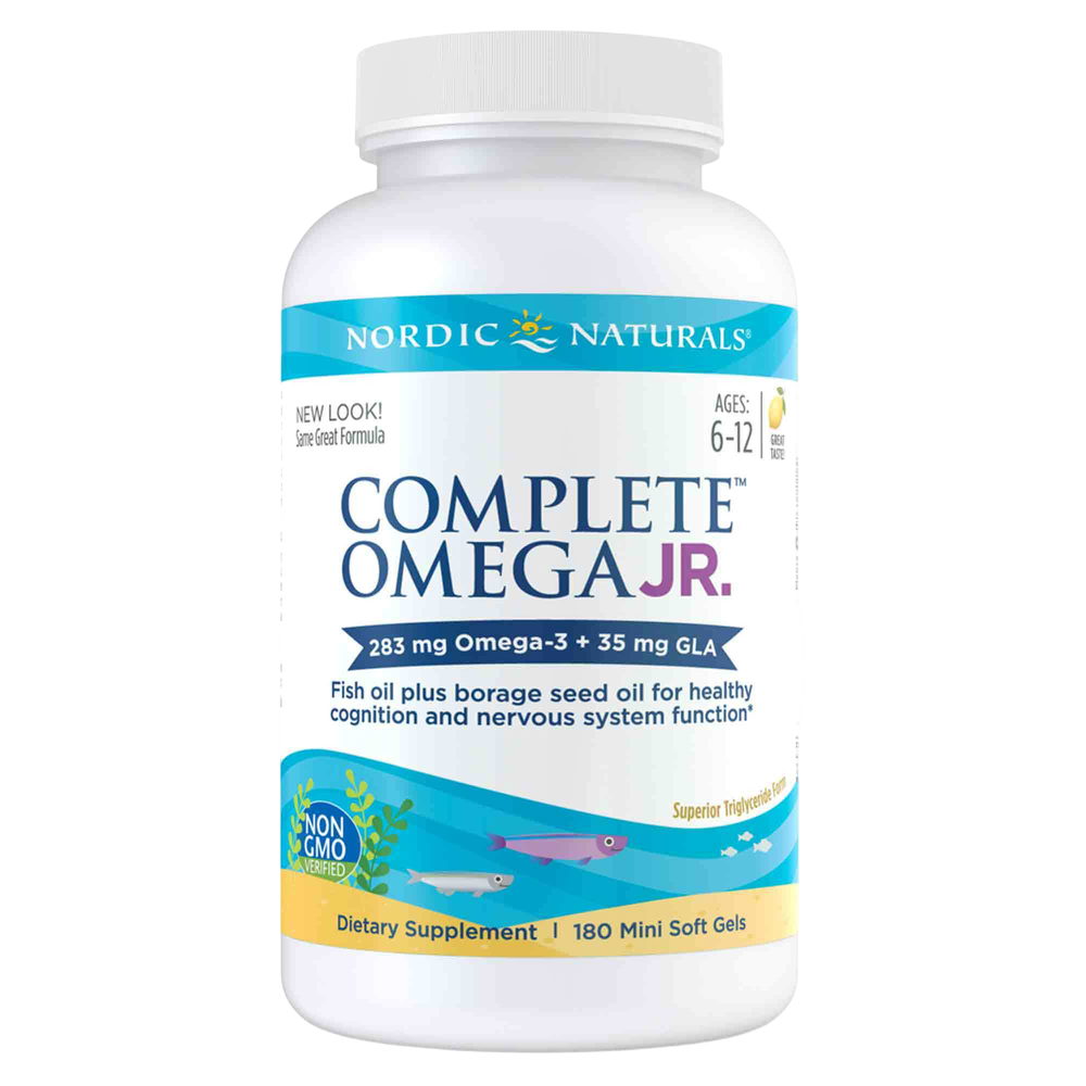 Complete Omega™ Junior blends omega-3s EPA and DHA from fish oil with GLA from borage seed oil to promote a healthy nervous system, this unique combination helps support normal social, emotional, and behavioral development in children ages 6–12.* Like all of Nordic Natural fish oil products, Complete Omega Junior is research-backed, and made entirely by Nordic Naturals to guarantee For children ages 6–12 years.• Delicious, natural lemon flavor