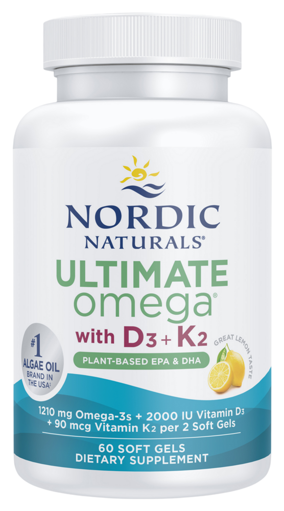 Ultimate Omega® Plant-Based D3+K2 offers 1210 mg of concentrated omega-3s plus 2000 IU of vitamin D3 and 90 mcg of vitamin K2 in just two soft gels. This uniquely sustainable algae-based formula provides a vegetarian and vegan-friendly alternative to fish oil for heart, brain, eye, and immune health, plus vitamin D3 and K2 to provide nutritional support for a balanced mood and strong bones.*