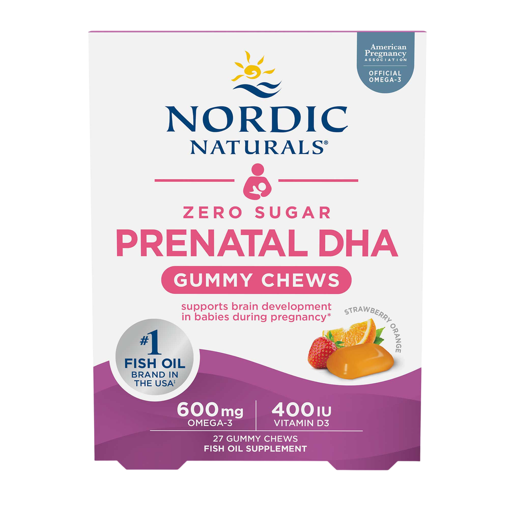 Zero Sugar Prenatal DHA Gummy Chews deliver DHA-dominant omega-3 fish oil plus highly absorbable vitamin D3 to support a healthy pregnancy.*