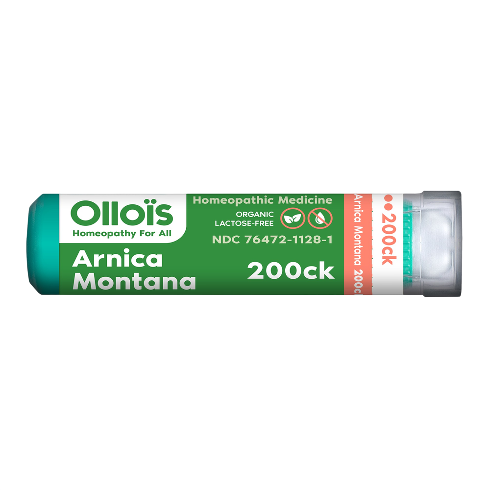 Homeopathic. Chronic or general pain. Ollois organic certified and lactose free Arnica 200CK is traditionally used for: pain from trauma, bruises, stiffness, and muscle soreness.†