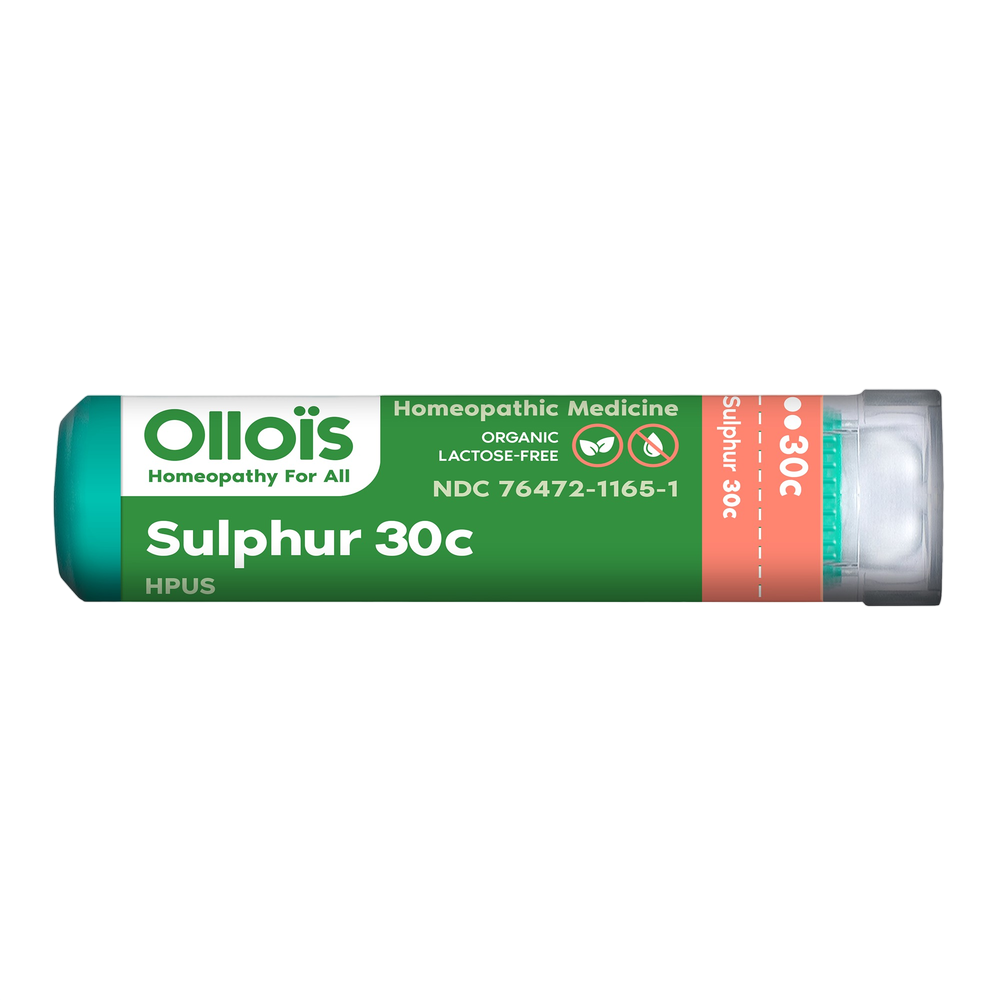 Homeopathic. Ollois organic certified and lactose free Sulphur 30C is traditionally used for: eczema and rashes.†