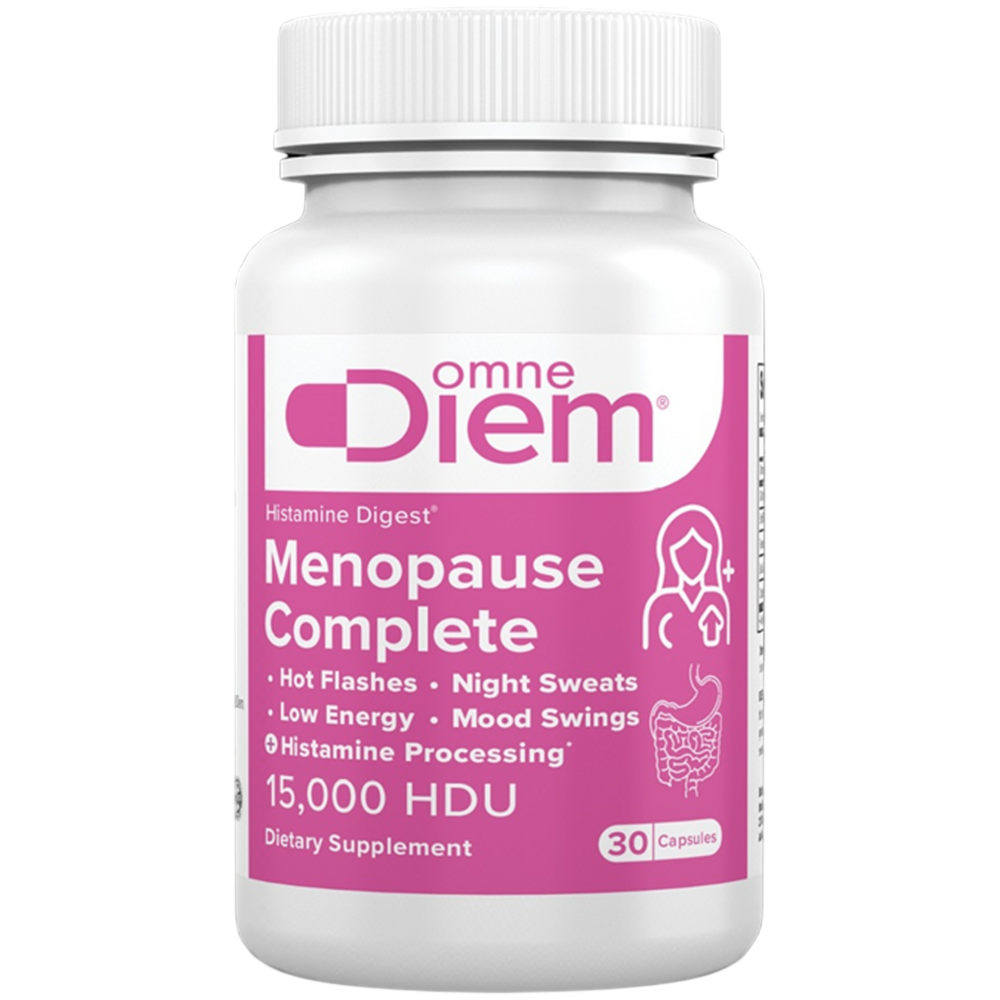Support for your comfort and well-being. OmneDiem® Menopause Complete supports the body's healthy response to the natural changes occurring during menopause. The addition of DAO supports natural histamine levels and processing, which are impacted by hormonal fluctuations.*