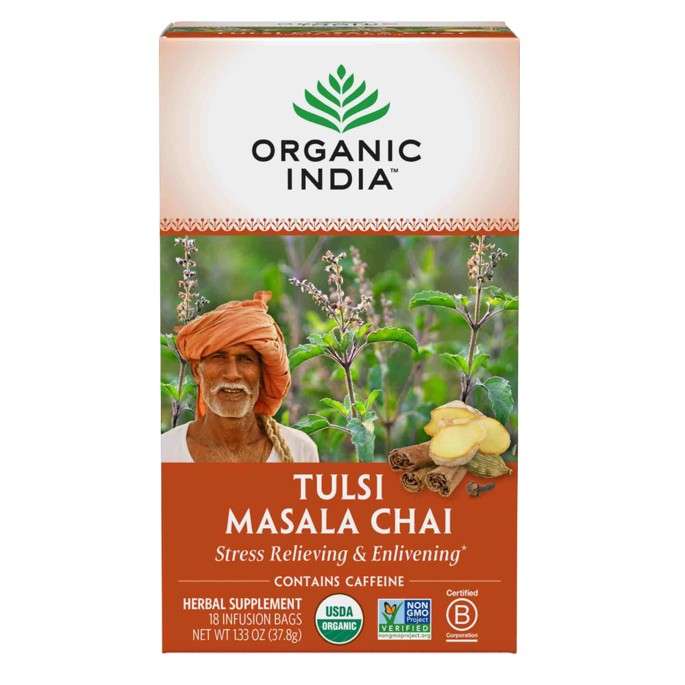 Traditional Indian spices, Black Tea and the benefits of Tulsi make this Masala Chai an exotic experience full of goodness.*