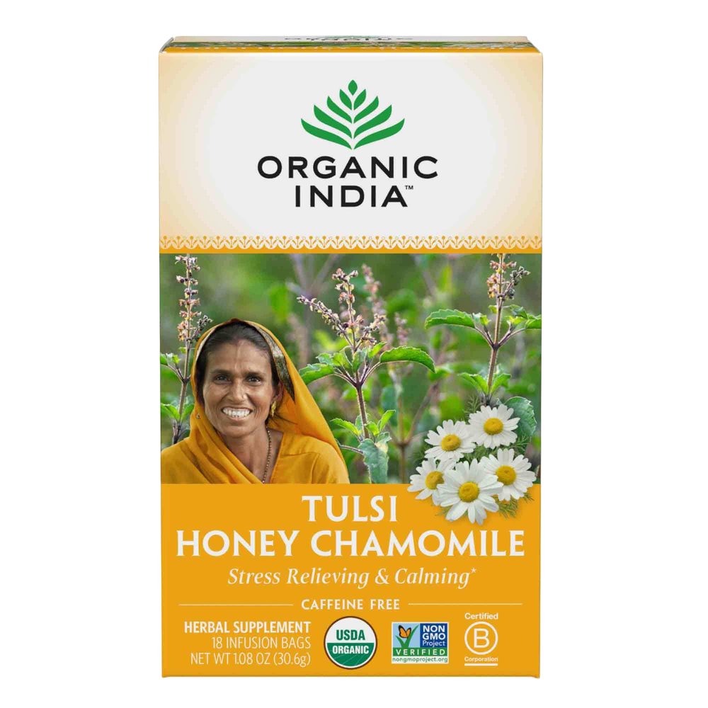 Tulsi blends harmoniously with aromatic Chamomile blossoms and the essence of Honey for a soothing stress-relieving break.*