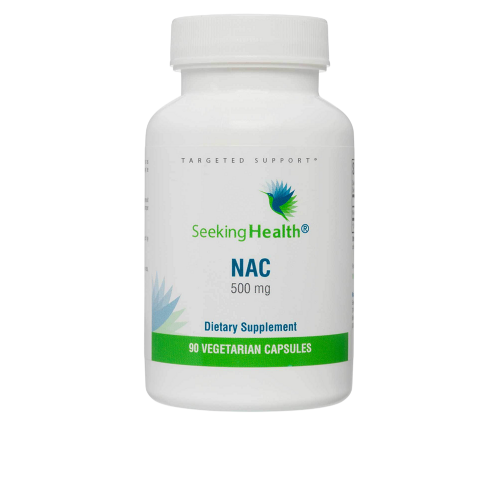 NAC by Seeking Health provides 500 mg of N-acetyl-L-cysteine (NAC) per vegetarian capsule. NAC supports the health of the liver, brain, lungs, and other body tissues. Many of the beneficial actions of NAC are related to its role in supporting normal production of glutathione, one of the body’s most important antioxidants. NAC is a well-absorbed supplemental form of cysteine, an amino acid required for the enzyme reaction that produces glutathione in the body. Typically the body’s ability to produce glutathione will begin to decline with age. Daily exposures to environmental toxins may increase the need for antioxidant protection from glutathione. Providing the building blocks for glutathione, such as NAC, may help support healthy levels of glutathione and the body’s healthy responses to these exposures.*