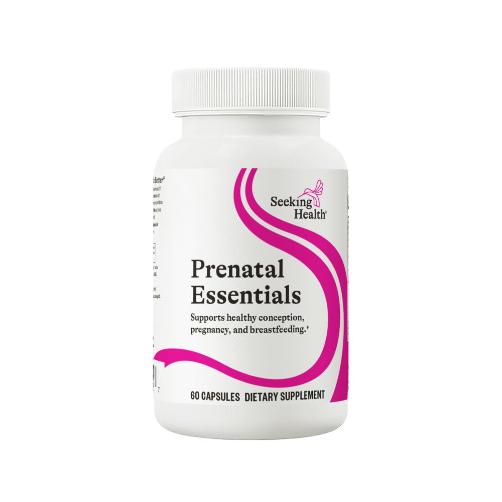 Prenatal Essentials is free of: Milk, egg, fish, shellfish, tree nuts, peanuts, wheat, soy, gluten, GMOs, artificial colors, artificial flavors.