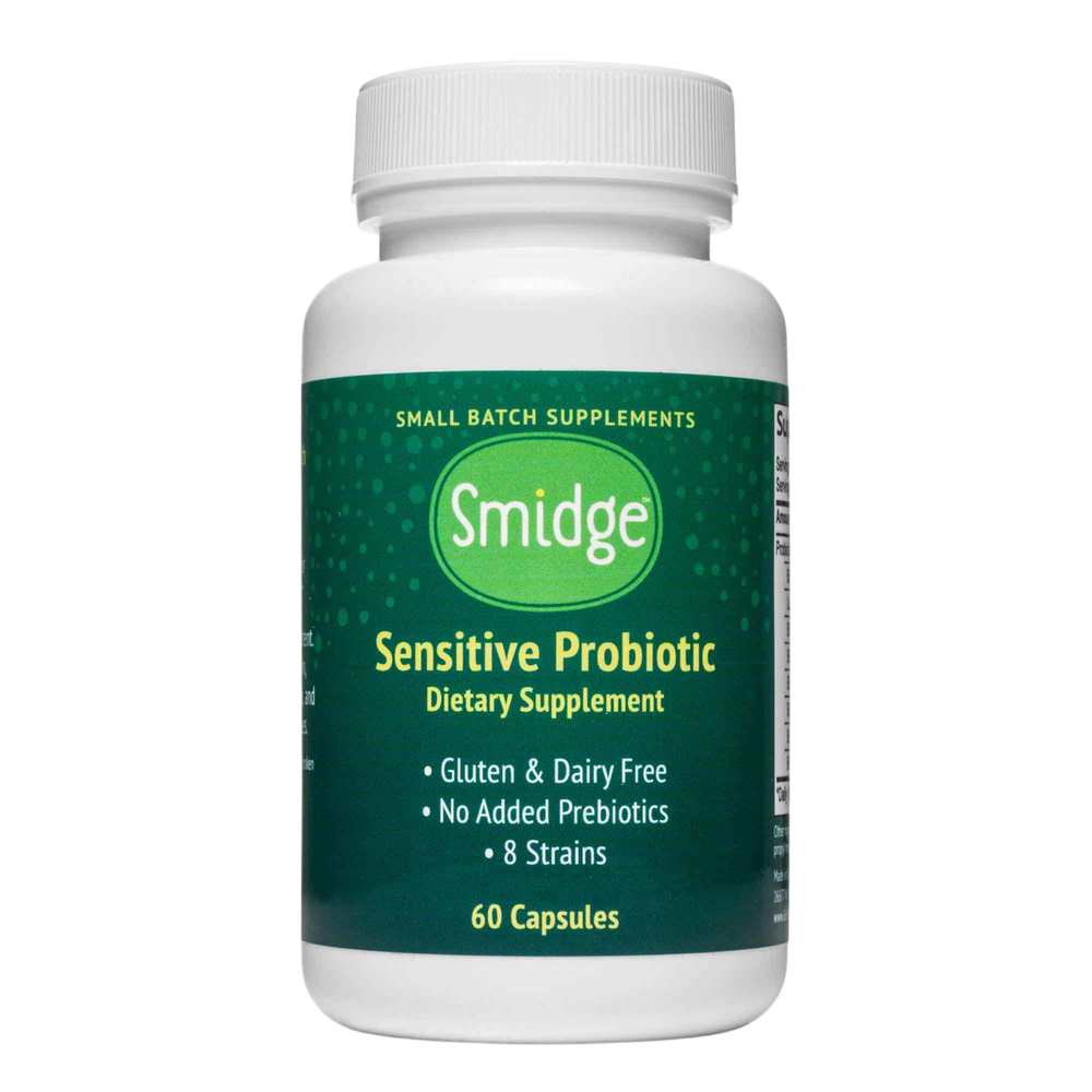 Smidge® Sensitive Probiotic (formerly known as GutPro®) is formulated for people with sensitive digestive systems. Now available in convenient oral capsules! It’s premium and clean, with eight carefully calibrated strains of beneficial gut bacteria. Smidge™ left out probiotic strains that can cause histamine intolerance, D-lactic acidosis or irritation. It’s non-GMO and free of prebiotics. No common allergens either — just proven probiotics and a formula based on years of research into digestive health. Perfect for when you’re on the go, and compatible with real food diets. Needs refrigeration. Kick start your digestive system with Smidge™ Sensitive Probiotic capsules today!