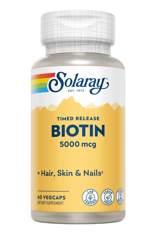 Biotin is an essential B Vitamin that plays a vital role in supporting healthy hair, skin, and nails. This two-stage, timed-release formula is designed to release half of the Biotin rapidly and the other half gradually over a period of up to 8 hours, **which may help extend the availability of the Biotin to the body over a longer period of time. **Based on in-vitro dissolution tests designed to simulate the digestive process. Individual results may vary.