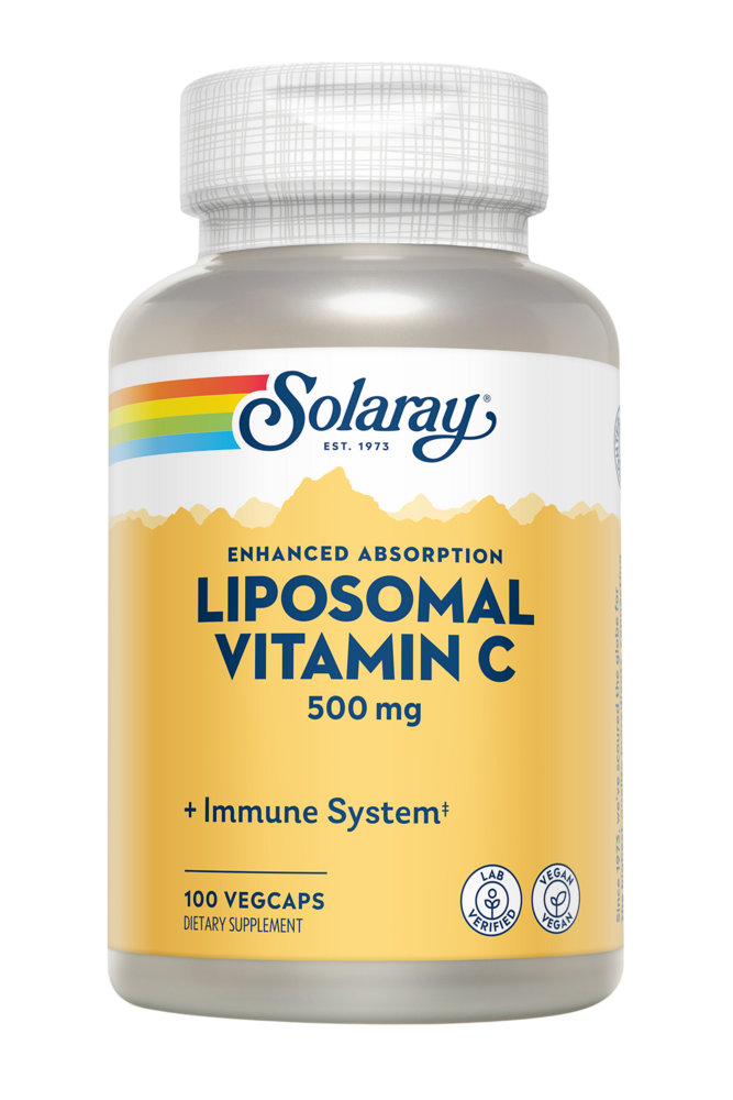 Solaray™ Liposomal Vitamin C vegetable capsules contain 400mg of fat soluble vitamin C. Liposomal C is created by combining vitamin C with fatty acids designed to provide antioxidant support to cell membranes and aid in the absorption of vitamin C.* Vitamin C provides antioxidant activity and is intended to help support normal, healthy collagen synthesis, capillary and blood vessel integrity, cartilage and bone development, immune function and nerve impulse transmission.*