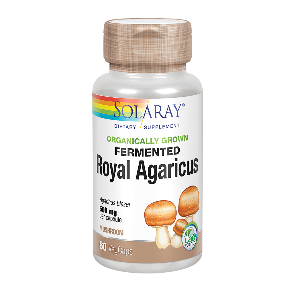 This unique Solaray™ supplement utilizes the natural powers of the Royal Agaricus Mushroom to provide a plethora of health benefits. This unique mushroom has been studied for its comprehensive medicinal and healing effects, primarily for the immune and cardiovascular systems.* Solaray utilizes organically grown Agaricus Mushrooms, derived naturally from the regions of Brazil, Japan and China, to provide you with a safe, natural source of support. Agaricus Mushroom has been shown to have many immune support qualities.* This Agaricus Blazei mushroom contains natural chemicals and beta glucans that help strengthen the immune system, and provide antioxidant support.* Solaray provides these powerful benefits in a gluten free supplement that is both vegan and vegetarian friendly, making each Fermented Royal Agaricus Mushroom capsule a safe addition to nearly any diet. Two vegetarian capsules are all you need each day to provide your body with this powerful, natural support.