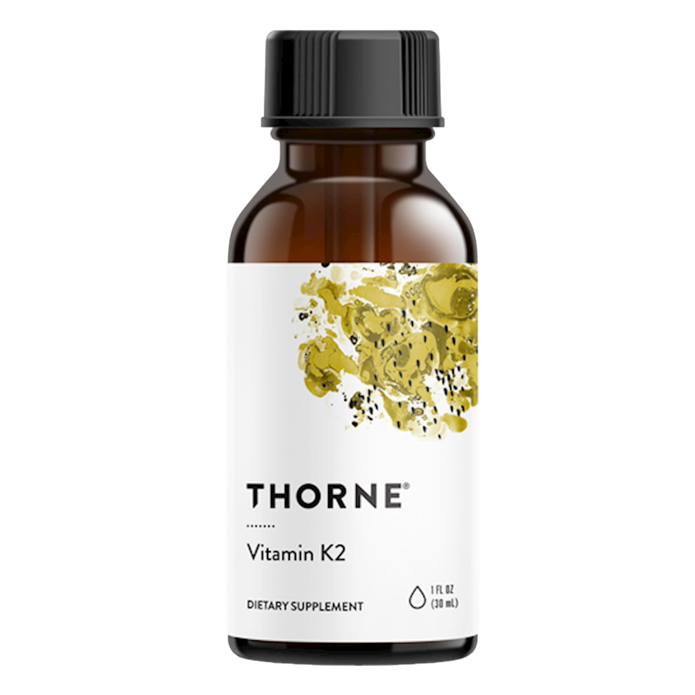 Vitamin K2 (as MK-4) exerts a more powerful influence on bone health than vitamin K1.* K2 also supports heart and blood vessel health.* Thorne's K2 comes in a metered bottle for ease of use and supplies 1 mg of vitamin K2 per drop. Research shows that 15 mg three times daily can be safely used.*
