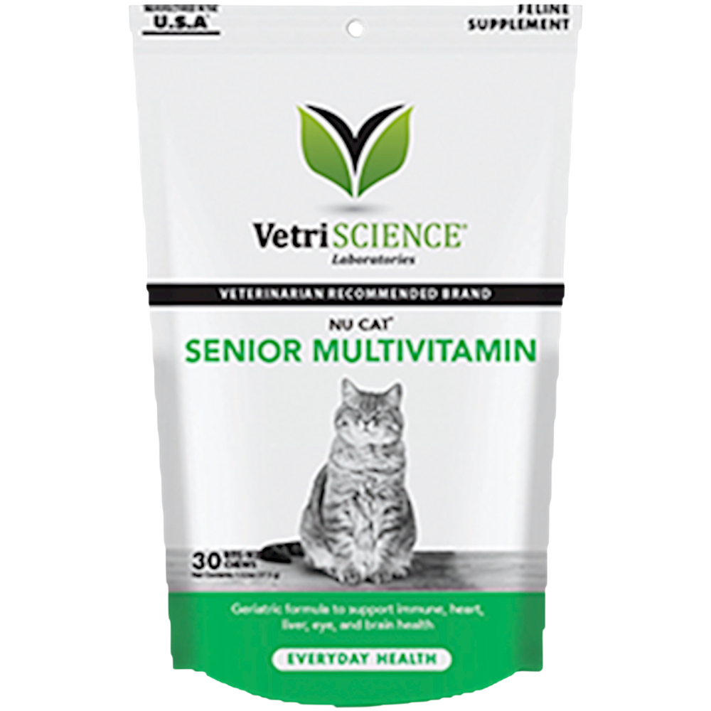 Nu Cat™ Senior Multivitamin is specifically formulated for geriatric cats. It is a comprehensive formula that supports cardiovascular, liver, cognitive, eye, joint, and digestive functions. As our cats age, they may need additional nutritional support. Nu Cat Senior Multivitamin provide these beneficial nutrients in a delicious fish-flavored chew.