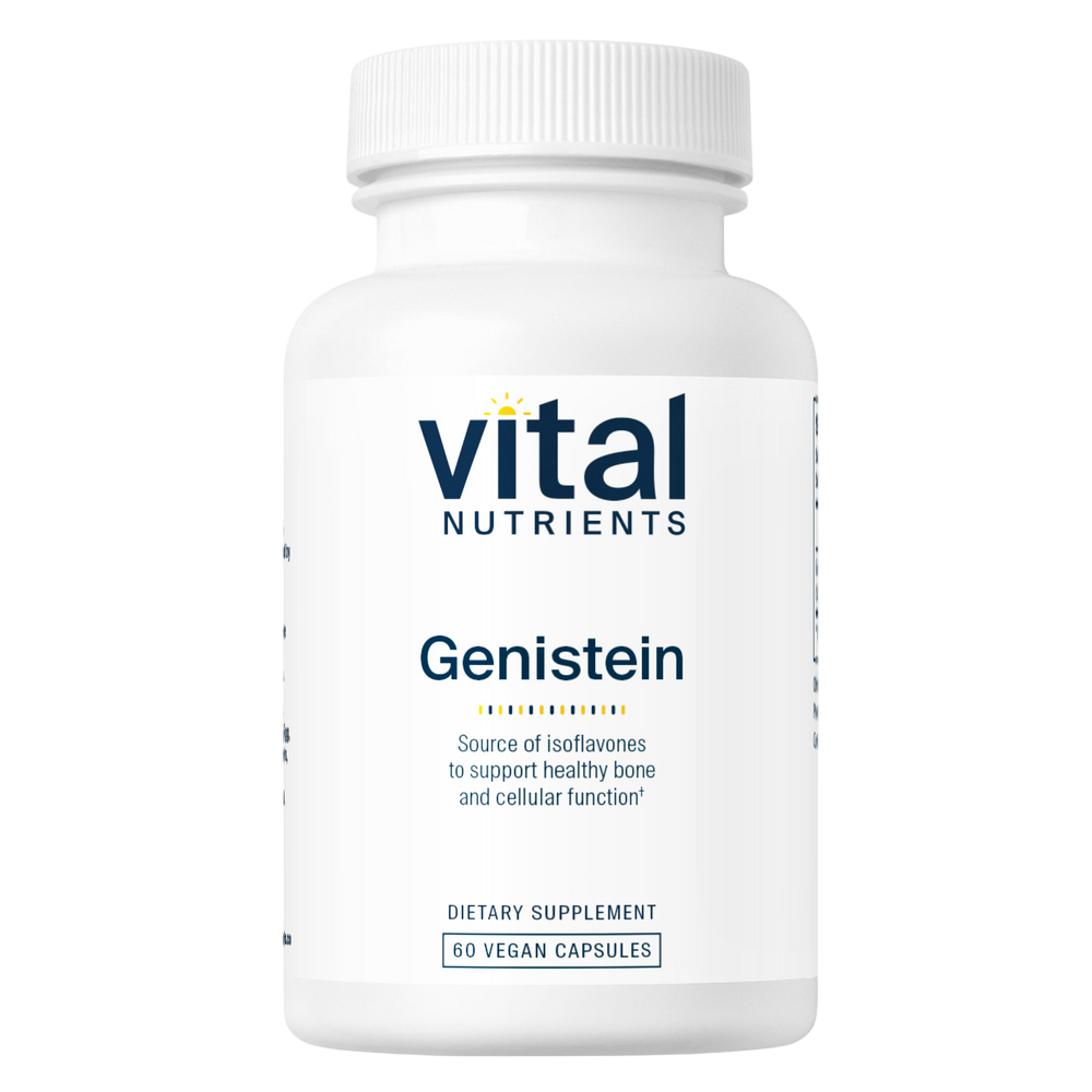 Genistein contains 125mg of Genistein and generally contains 88-100mg of daidzein, the major isoflavone aglycones.* Genistein has been shown to help maintain normal cell function and growth.* Genistein and daidzein also promote and support immune system and bone marrow health.* The isoflavone glucosides (isoflavone linked to glucose) genistin, daidzin and glycitin are not present in this product.* Most soy products on the market contain isoflavone glucosides and few isoflavone aglycones (isoflavone without the glucose attached).* Isoflavone aglycones are the desired form and are more rapidly and better absorbed than isoflavone glucosides.*