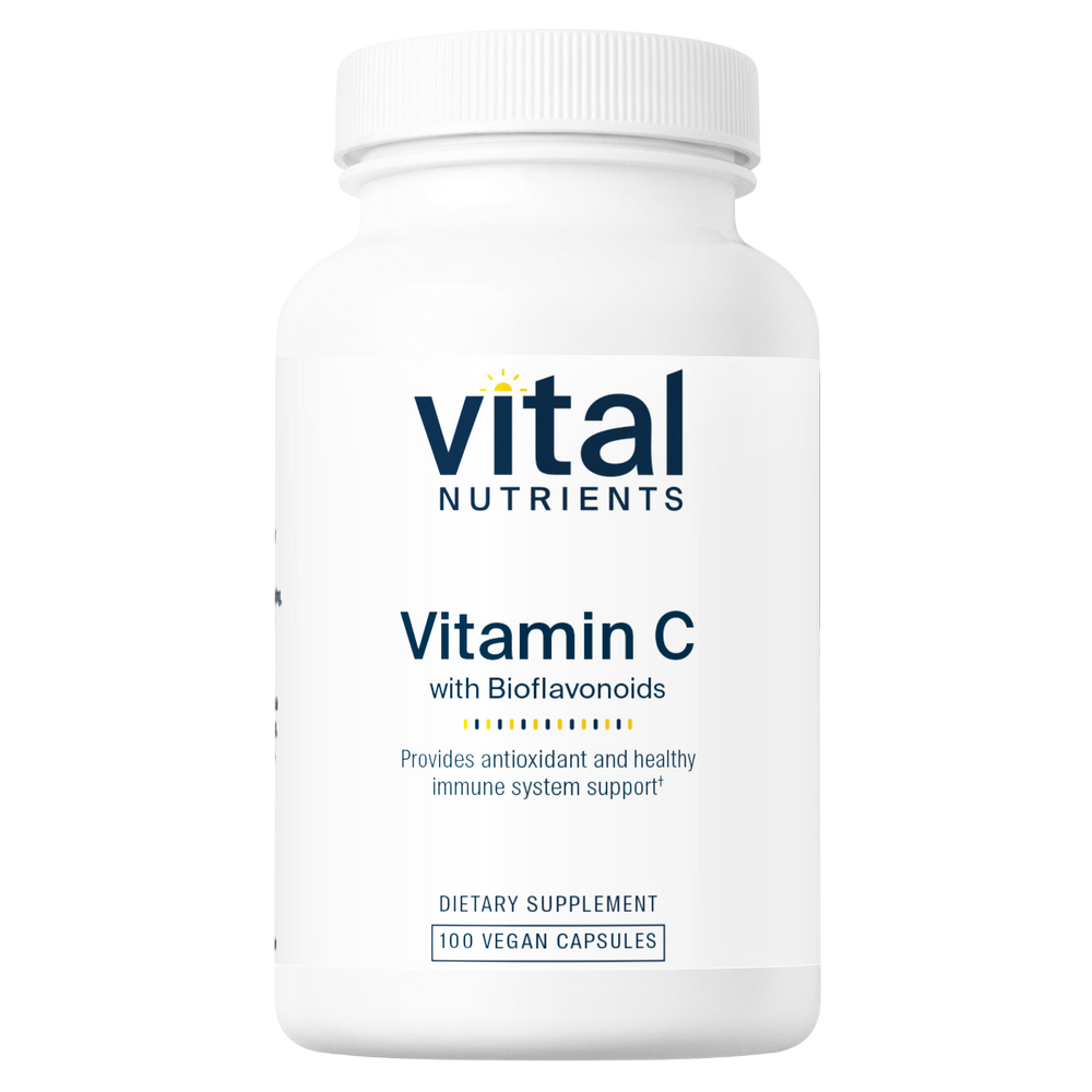 Vitamin C with Bioflavonoids combines two powerful synergistic nutrients to enhance immune function and antioxidant activity.* This formula contains a 55-60% Citrus Bioflavonoid Complex.* It supports healthy vein function and strength of capillaries.* It also helps to support stable mast cells.*