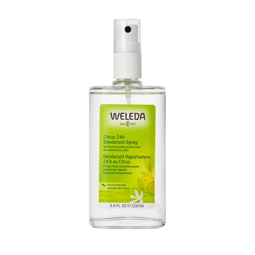 Weleda Citrus 24H Deodorant distills freshness, with the zing of lemon and litsea cubeba essential oils to rebalance body odors so skin can feel refreshed. In a recyclable glass bottle, with a non-aerosol pump spray, this deodorant is free of aluminum salts and contains fine ingredients, that add up to the best for your body and the earth.