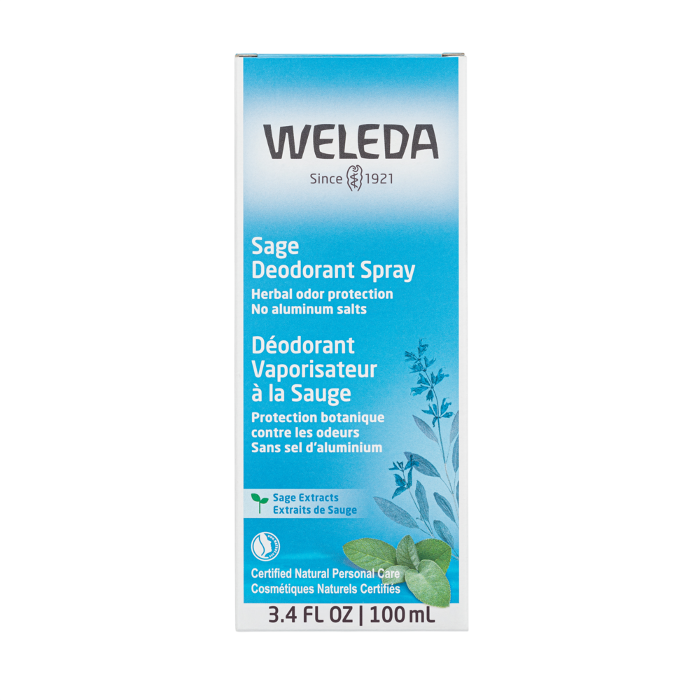 Where ordinary deodorants clog your pores and work against your body’s own detoxifying process, Weleda’s Sage 12H Deodorant works in harmony with your body letting your body breathe. In recyclable glass bottles, Weleda's deodorants all use non-aerosol pump sprays, with no aluminum salts or other antiperspirant minerals.